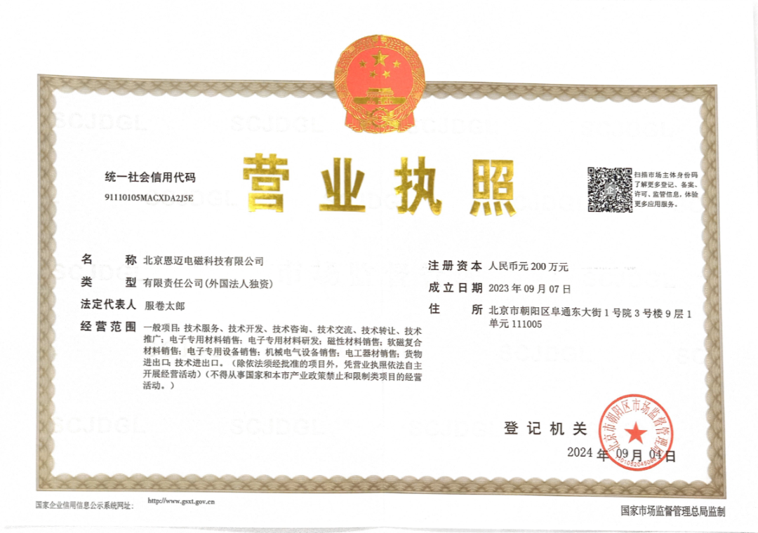北京恩迈电磁科技有限公司是日本NMI公司的全资子公司,中国总经销。