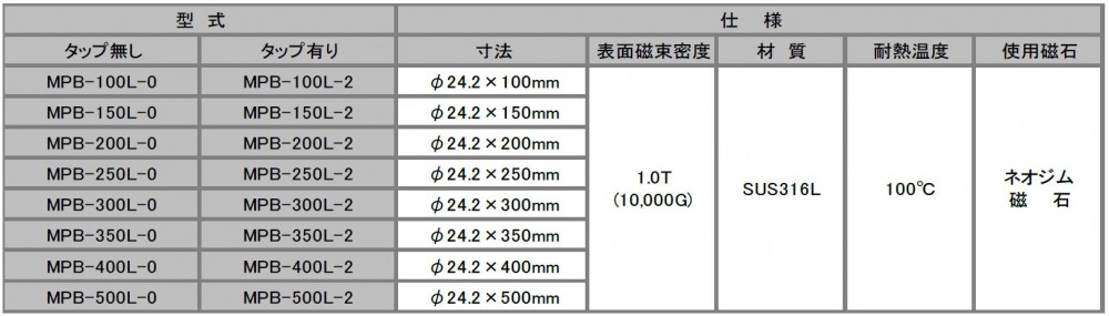 ①パイプ材質:SUS316L