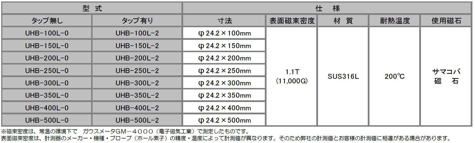②表面磁力:φ24.2仕様 11,000Gauss/φ25仕様 10,000Gauss